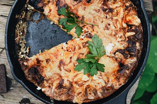 Confit garlic & fried potato frittata